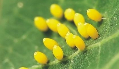 배추흰나비는 배추나 무 같은 식물 잎 뒷면에 조그맣고 노란 알을 낳습니다. 알은 작고 동그란 모양이에요. 날씨가 따뜻하면 며칠 내로 알에서 애벌레가 나옵니다.