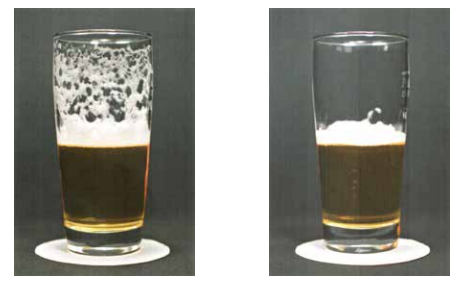 거품은 맥주의 품질의 중요함 지표이며 거품 형성 및 유지는 맥주 품질의 특징이다. 맥주 거품이 쉽게 꺼지면 맥주의 이미・이취 등이 쉽게 느끼게 된다. 특히 맥주 거품은 맥주의 바디 감이라든가 신선함과 직접적인 연관이 있다. 맥주 거품 형성과 유지는 사용원료, 제조공법 및 품질관리에 따라 다르게 나타난다.