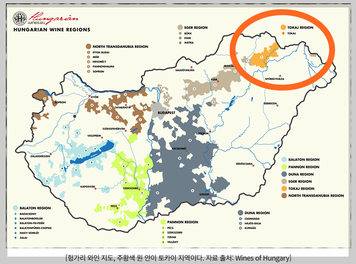 목차 토카이 와인 (귀부와인) 토카이 르네상스 주도한 생산자 기타 생산 지역 1. 토카이 와인 (귀부 와인) 토카이(Tokaji) 토카이(Tokaji)는 헝가리 동북쪽에 위치한 와인 산지 토카이(Tokaj)에서 만드